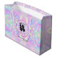 Disponible en finition mate ou brillante, les sacs-cadeaux promotionnels personnalisés avec votre logo d'entreprise ajoutent une touche professionnelle à vos cadeaux d'entreprise, cadeaux et sacs de vente au détail tout en faisant de la publicité à votre entreprise. Fabriqué par Digiwrap. Pas de quantité minimale de commande et pas de frais de configuration. Ce sac est placé sur un pastel iridescente faux holographique arc-en-ciel opal kaleidoscope arrière - plan d'impression, prêt pour votre logo graphique.