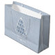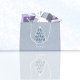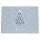 Le design Joyoux Noel en bleu pastel. Un sac cadeau avec des arbres de Noël argentés et un arrière - plan de neige. Conçu avec vos cadeaux de vacances à l'esprit.