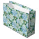 Ce sac cadeau toutes occasions est affiché dans une belle impression d'hydrangées bleues. Grande taille affichée brillante
