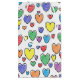 Art Abstrait de coeurs de différentes couleurs, fait en crayon, qui lui donne un aspect presque caricatural, dessiné en noir contre un arrière - plan blanc.