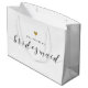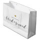 Sac cadeau personnalisé "Will You Be My Bridesmaid" pour cadeaux de demande demoiselle d'honneur avec calligraphie moderne et motif de cœur doré.