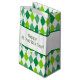 Ce motif de diamant vert et blanc comporte une large bande blanche enroulée autour du centre. Le texte indique "Joyeuse Saint-Patrick" et peut être personnalisé.