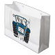 Un grand sac cadeau mariage de ferme tracteur qui peut être personnalisé avec les noms du couple et la date mariage. Si vous souhaitez modifier la taille ou la police des noms et de la date, cliquez sur le bouton Modifier pour customiser plus loin. Le faisceau du tracteur est dans une crème subtile et blanche. Le sac cadeau mariage parfait pour un couple qui a un mariage de ferme à la campagne.
