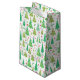 Ce sac cadeau de Noël est affiché dans un imprimé d'arbres de fête. Petite taille affichée brillante
