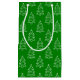 Un sac cadeau fait avec un motif blanc de Noël sur un arrière - plan vert. Customisez la couleur verte arrière - plan, la taille motif entre autres options.