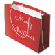 Joyeux Noël, grand sac cadeau en papier de vacances en pêche, rose et rose rouillé, personnalisez le texte pour en faire votre propre style pour toute occasion.