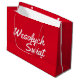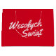 Un sac cadeau de Noël avec l'écriture de voeux de Noël polonais. Il dit "Wesołych świąt" souhaitant un joyeux Noël.