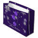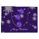 Offrez vos cadeaux de Noël cette période de fêtes avec un sac cadeau pourpre ornements de Noël. Le design des sacs-cadeaux comprend un trio d'ornements de Noël suspendus avec des flocons de neige en chute et un arrière - plan violet foncé. Autres cadeaux et objets de vacances disponibles avec ce design aussi.