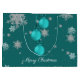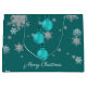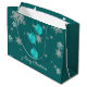 Offrez vos cadeaux de Noël cette saison des Fêtes avec un sac cadeau de Noël ornementaux Turquoise. Le design des sacs-cadeaux comprend un trio d'ornements de Noël suspendus avec des flocons de neige en chute et un arrière - plan turquoise foncé. Autres cadeaux et objets de vacances disponibles avec ce design aussi.