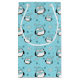 Joli petit manchot d'hiver revêtu d'une écharpe bleue et d'un casquette douillet.