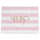Sac cadeau de remerciement Gold Pink Stripe Merci Beaucoup