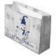 Offrez vos cadeaux de Noël cette saison de vacances avec un sac cadeau de vacances Blue Cute Snowman. Le design de sac cadeau comprend un bonhomme de neige mignon dans un casquette, foulard et gants ornés de flocons de neige gris et blanc contre un arrière - plan gris grunge. Autres cadeaux et objets de vacances disponibles avec ce design aussi.