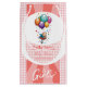 Sac cadeau de baby shower rose et blanc avec ballon, joliment conçu pour accueillir de belles surprises pour les invités célébrant la nouvelle arrivée.