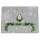Offrez vos cadeaux de Noël cette période de fêtes avec un sac cadeau Grey Reindeer. Le design des sacs-cadeaux comprend un renne festif portant une couronne de Noël ornée de baies sèches et de flocons de neige en chute, ainsi qu'une boîte de salutation décorée de guirlandes de vacances. Autres cadeaux et objets de vacances disponibles avec ce design aussi.