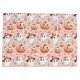 Des citrouilles souriants. Des fantômes avec des arcs, et des fantômes avec des casquettes volent à travers l'arrière - plan rose pour un sac cadeau unique, parfait pour un baby shower d'Halloween, un anniversaire d'Halloween, ou juste pour un cadeau.