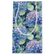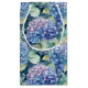 Ce sac cadeau toutes occasions est affiché dans une belle impression d'hortensias. Petite taille affichée brillante