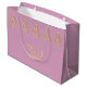 Le design Joyoux Noel en rose. Un sac cadeau avec le sapin de Noël doré et un arrière - plan festif. Conçu avec vos cadeaux de vacances à l'esprit.