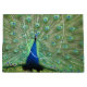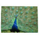 Peacock avec une tête et un cou bleu brillant qui se démarquent contre les plumes de la queue s'est évanoui pour montrer les "yeux". Image des deux côtés.