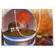 À l'intérieur d'un "globe de neige" se trouve un paysage d'automne avec un chalet ombragé d'érables et de cerisiers. Le champ environnant est rempli de hautes herbes vertes et dorées. Roses et lierre grimpent le mur de la petite maison. L'érable est d'une brillante couleur d'automne, et au lieu de la neige, il y a des feuilles d'érables dans les tons rouge, orange et jaune qui tourbillonnent autour du globe et qui blanchissent l'herbe.