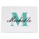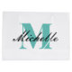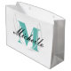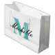 Sac cadeau monogrammé avec typographie de script sophistiquée. Elégant grand sac cadeau pour cadeaux chic et faveurs de fête. Design modèle de luxe avec des couleurs turquoise bleu et noir sur arrière - plan blanc. Idéal pour Anniversaire, Vacances, mariage et plus. Personnalisez avec votre propre nom. Grandes et petites tailles disponibles.