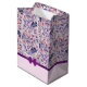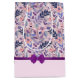 Fleurs florales dans sac cadeau bleu pourpre avec ruban mignon au milieu. Le design est entièrement customisé.