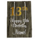 Ce design sophistiqué, luxueux et élégant de giftbag à thème d'anniversaire comprend un grand numéro ordinal "13ème" avec un motif dégradé imitation/faux d'inspiration or, ainsi que le message de voeux d'anniversaire "13ème anniversaire heureux", et un nom de destinataire modifiable dans une police de style script. Il possède également un motif arrière - plan d'inspiration imitation bois. Un giftbag design comme celui-ci peut être utilisé pour donner un cadeau ou un cadeau en l’honneur du 13e anniversaire de quelqu’un. [~Z0000520]