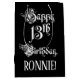 Ce modèle de sac cadeau d'anniversaire luxueux et formel comporte le message "Joyeux 13e anniversaire", en texte de style opulent, sur un arrière - plan de couleur noire. Il a également un nom de destinataire personnalisé. Un giftbag comme celui-ci pourrait être utilisé pour envelopper les cadeaux donnés à quelqu'un pour célébrer son 13e anniversaire. [~Z0000557]