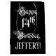 Ce design élégant et formel de sac cadeau d'anniversaire comporte le message "Happy 14th Birthday", dans un élégant texte de style script, sur un arrière - plan de couleur noire. Il a également un nom de destinataire personnalisable. Un sac cadeau d’anniversaire comme celui-ci pourrait être une façon respectable d’envelopper un cadeau ou un cadeau pour célébrer le quatorzième anniversaire de quelqu’un. [~Z0000557]
