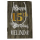 Sac Cadeau Moyen 15e anniversaire : Faux Gold Look & Faux Wood Moti