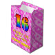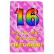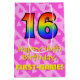 Ce giftbag d'anniversaire amusant, gai et optimiste est doté d'un grand nombre de "16" avec un motif inspiré par un gradient de spectre arc-en-ciel, avec le message "Happy 16th Birthday," et un nom de destinataire personnalisable. Il possède également un arrière - plan aimant aux formes cardiaques roses au sein d'un motif rayé. Un joyeux giftbag comme celui-ci pourrait être une façon amusante d'envelopper un cadeau d'anniversaire ou un cadeau donné à quelqu'un qui célèbre son 16e anniversaire. [~Z0000511]