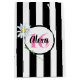 Marguerite blanche sur motif rayé noir et blanc avec nom et âge pour 16e anniversaire. L'âge et le nom peuvent être changés.