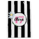 Marguerite blanche sur motif rayé noir et blanc avec nom et âge pour 17ème anniversaire. L'âge et le nom peuvent être changés.