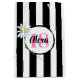 Marguerite blanche sur motif rayé noir et blanc avec nom et âge pour 18e anniversaire. L'âge et le nom peuvent être changés.