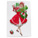 Noël comme il ressemblait dans les années 1950 avec cette illustration rétro d'une dame tout habillée d'une robe à jupe ample en rouge et vert.