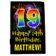Ce giftbag design excitant, coloré et amusant d'anniversaire comporte un grand nombre de "19" avec un motif de style dégradé de spectre arc-en-ciel, avec le message "Happy 19th Birthday," et un nom de destinataire personnalisé. Il possède également un motif arrière - plan coloré inspiré par les feux d'artifice de la fête. Un sac-cadeau à thème d’anniversaire comme celui-ci pourrait être une façon amusante d’envelopper un cadeau ou un cadeau pour célébrer le dix-neuvième anniversaire de quelqu’un. [~Z0000509]