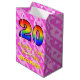 Sac Cadeau Moyen 20e anniversaire : Amusants Coeurs roses Stripes;