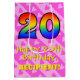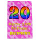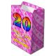 Ce modèle de giftbag amusant, aimant et joyeux, à thème d'anniversaire, comporte un grand nombre de "20" avec un motif de style rainbow, ainsi que le message "Happy 20th Birthday," et un nom de destinataire personnalisé. Il a aussi un coeur rose optimiste et raye motif arrière - plan. Un joyeux giftbag comme celui-ci pourrait être utilisé pour envelopper les cadeaux donnés à quelqu'un pour célébrer son 20e anniversaire. [~Z0000511]