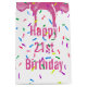Sac Cadeau Moyen 21e Anniversaire Saupoudré Sur Glacé Rose