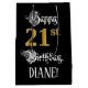 Ce design élégant et élaboré de giftbag sur le thème de l'anniversaire comprend le message "Joyeux 21e anniversaire", ainsi qu'un nom de destinataire personnalisé. Une partie du message est dans un texte de style script sophistiqué, le grand numéro "21st" dispose d'un faux/imitation motif de look d'inspiration or, et l'arrière - plan est coloré en noir. Un sac cadeau comme celui-ci peut être utilisé pour envelopper les cadeaux donnés à quelqu'un pour célébrer son 21e anniversaire. [~Z0000560]