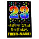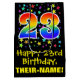 Ce modèle de sac cadeau excitant, dynamique et amusant, à thème d'anniversaire, comprend un grand nombre de "23" avec un motif inspiré par un gradient de spectre arc-en-ciel, ainsi que le message "Joyeux 23e anniversaire", et un nom de destinataire personnalisable. Il dispose également d'un motif arrière - plan aux formes étoiles de différentes tailles et couleurs. Un sac cadeau comme celui-ci peut être utilisé pour donner un cadeau ou un cadeau en l’honneur du 23e anniversaire de quelqu’un. [~Z0000510]