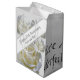 Ce sac cadeau d'anniversaire de mariage 25 ans présente des fleurs de Rose blanches argentées conformément au thème argenté traditionnel pour cet anniversaire marquant avec texte modifiable. Idéal pour un couple ou des parents célébrant leurs noces d'argent. Parfait pour être rempli de cadeaux pour cette occasion spéciale.