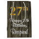 Ce modèle élégant, élégant et sophistiqué de sac cadeau d'anniversaire comporte un grand numéro ordinal "27th" avec un motif dégradé d'inspiration fausse/imitation or, ainsi que le message de voeux d'anniversaire "Happy 27th Birthday", et un nom de destinataire modifiable dans une police de style script. Il possède également un motif arrière - plan d'inspiration imitation bois. Un luxueux sac-cadeau d’anniversaire à thème comme celui-ci pourrait être utilisé pour donner un cadeau ou un cadeau pour célébrer le vingt-septième anniversaire de quelqu’un. [~Z0000520]