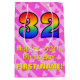 Ce sac cadeau joyeux, amoureux et amusant à thème d'anniversaire comporte un grand nombre de "32" avec un motif de gradient de spectre arc-en-ciel, avec le message "Happy 32nd Birthday," et un nom de destinataire modifiable. Il a également un arrière - plan optimiste avec des formes de coeur rose dans un motif rayé. Un joyeux sac cadeau comme celui-ci pourrait être utilisé pour envelopper les cadeaux donnés à quelqu'un pour célébrer leur trente-deuxième anniversaire. [~Z0000511]