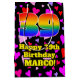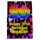 Ce modèle de sac cadeau d'anniversaire coloré et joyeux comporte un grand nombre de "39" ayant un motif inspiré par un gradient de spectre arc-en-ciel. Il comporte également le message "Joyeux 39e anniversaire", et un nom personnalisé. L'arrière - plan présente un motif aux formes de coeur violet, rose et rouge. Un giftbag à thème d'anniversaire comme celui-ci pourrait être une façon amusante d'envelopper un cadeau ou un cadeau d'être donné à quelqu'un qui célèbre son trente-neuvième anniversaire. [~Z0000551]