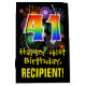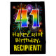 Ce design de giftbag d'anniversaire amusant, excitant et coloré comprend un grand nombre de "41" avec un motif inspiré par un gradient de spectre arc-en-ciel, ainsi que le message "Happy 41st Birthday," et un nom de destinataire personnalisé. Il dispose également d'un motif arrière - plan coloré inspiré par l'allure d'un feu d'artifice festif. Un sac cadeau comme celui-ci peut être utilisé pour envelopper les cadeaux donnés à quelqu'un pour célébrer son 41e anniversaire. [~Z0000509]