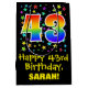 Ce sac cadeau coloré, excitant et dynamique à thème d'anniversaire dispose d'un grand nombre de "43" avec un motif de gradient de spectre arc-en-ciel, avec le message "Happy 43rd Birthday," et un nom de destinataire modifiable. Il dispose également d'un motif arrière - plan aux formes étoiles de différentes tailles et couleurs. Un sac cadeau comme celui-ci peut être utilisé pour envelopper les cadeaux donnés à quelqu'un pour célébrer son 43e anniversaire. [~Z0000510]