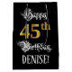 Ce design chic et élégant sur le thème de l'anniversaire comprend le message "Joyeux 45e anniversaire", ainsi qu'un nom de destinataire personnalisé. Une partie du message est dans un texte de style script luxueux, le grand numéro "45th" dispose d'un faux/imitation motif de look d'inspiration or, et l'arrière - plan est de couleur noire. Un sac-cadeau comme celui-ci peut être utilisé pour donner un cadeau ou un cadeau en l’honneur du 45e anniversaire de quelqu’un. [~Z0000560]