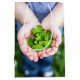 Une petite fille tient une poignée de trèfle à quatre feuilles pour la Saint Patrick. Le texte peut être modifié ou supprimé.