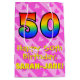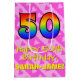 Ce sac cadeau joyeux, amusant et amoureux à thème d'anniversaire dispose d'un grand nombre de "50" avec un motif de gradient de spectre arc-en-ciel, avec le message "Happy 50th Birthday," et un nom de destinataire personnalisé. Il dispose également d'un motif arrière - plan optimiste aux formes et rayures de coeur rose. Un joyeux giftbag comme celui-ci pourrait être une façon amusante d'envelopper un cadeau d'anniversaire ou un cadeau donné à quelqu'un qui célèbre son 50e anniversaire. [~Z0000511]