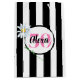Marguerite blanche sur motif rayé noir et blanc avec nom et âge pour 50e anniversaire. L'âge et le nom peuvent être changés.